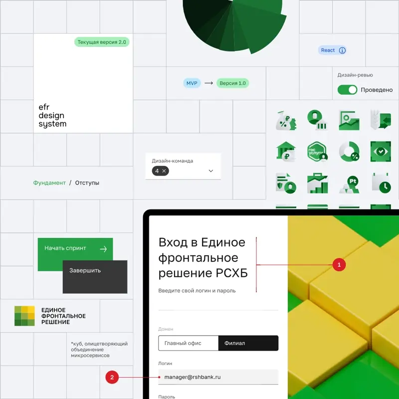 Внутренний продукт РСХБ. Внедрение дизайн-системы. Редизайн старых и внедрение новых продуктов.