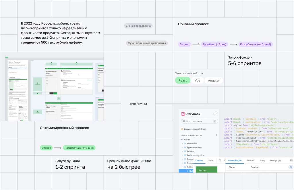В 2022 году Россельхозбанк тратил по 5-6 спринтов только на реализацию фронт-части продукта. Сегодня мы выпускаем то же самое за 1-2 спринта и экономим около [NDA] тыс. рублей на фичу.